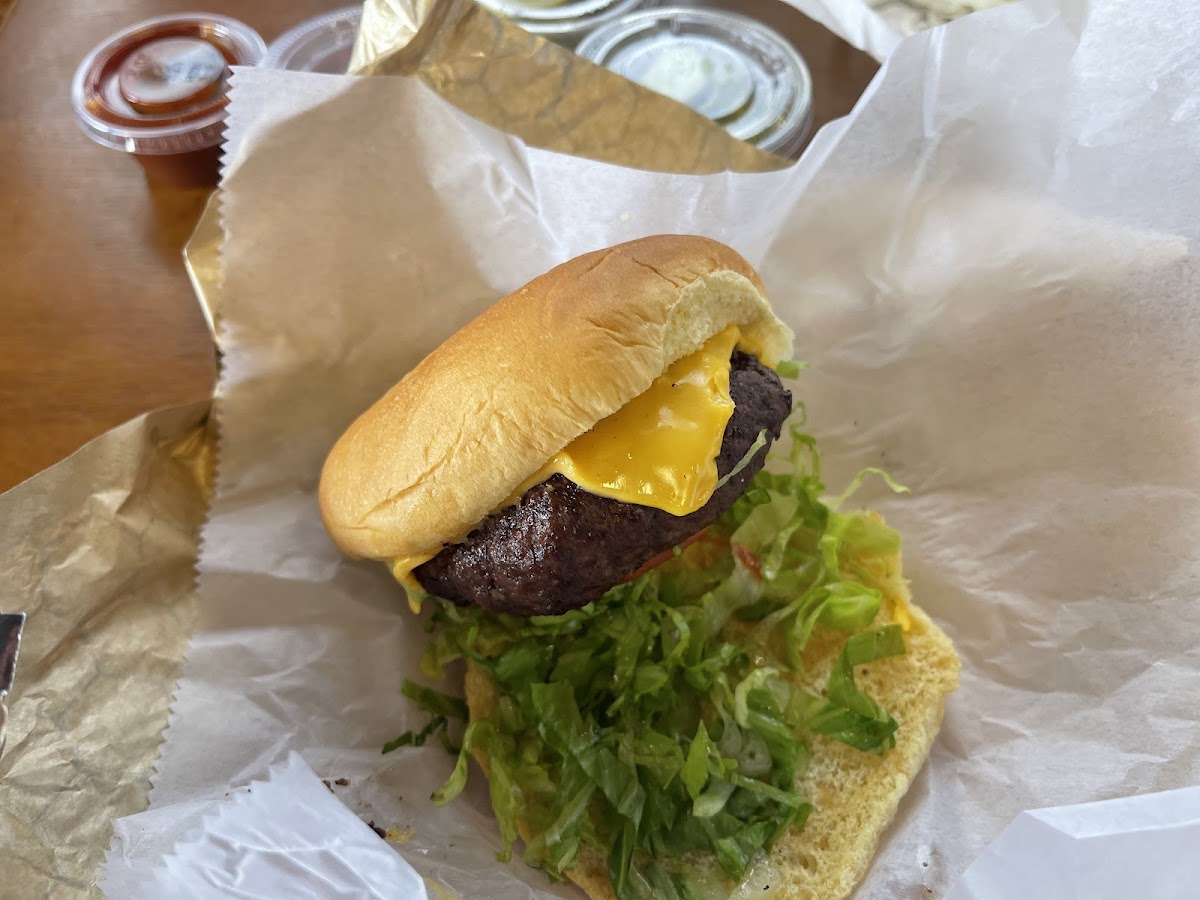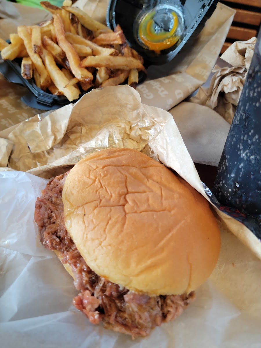 Lives up to the hype. Better than I thought it would be. Cooked perfect medium rare. A taste thrill if you like BBQ. The bun is fresh, moist and flavorful. Tasty horseradish sauce. Green beans are unique and good if you like stewed tomatoes like I do. Unique tasty baked beans. Good Mac N Cheese. Good fries - I would order the fries well done or extra crispy. Good Mac salad. New location is nice. Hope to get back here.