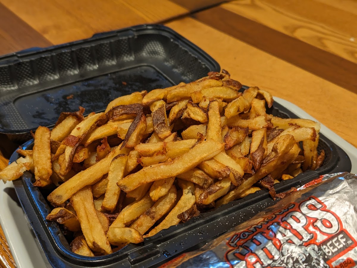 Ribs were well done and tasty. But that BBQ sauce that they put on was awful. I was only able to eat the ones that didn't have the sauce. Fries were too greasy.