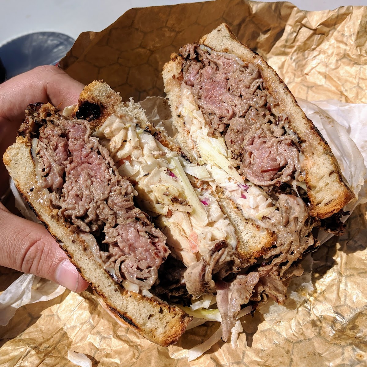 I searched for food emblematic of Baltimore for my day visit. I'm not into crab so I chose pit beef and chaps is the big name. I bought the beef pit w gravy plate with french fries. It was good. I just ate it with knife and fork. Very tasty and lots to eat. With soft drink it was about $20. I would go there next time in town and get it without the gravy.