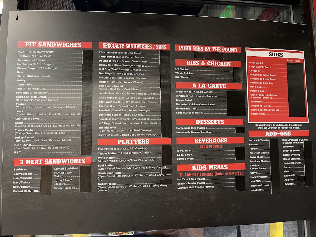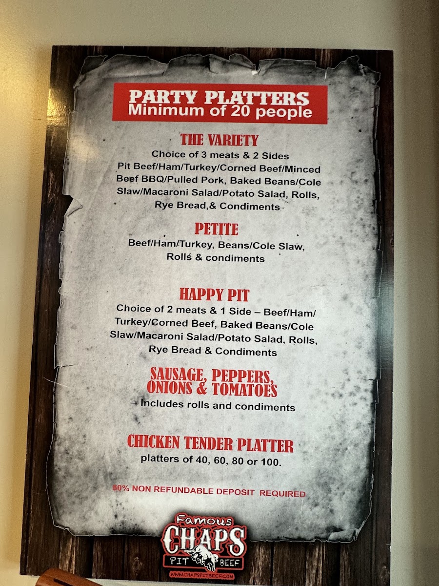 Chaps Pit Beef Baltimore Menu